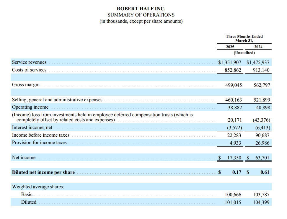 Robert Half Q1FY25 Earnings Release